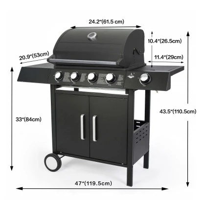 Dieser Gasgrill wird nach hohen Qualitätsstandards gefertigt und entspricht sämtlichen geltenden Normen, um höchstmögliche Sicherheit beim Grillen zu bieten. Das schlichte, hochwertige Design in Kombination mit der hohen Funktionalität des Gerätes, lässt keinerlei Wünsche offen und wird sowohl Besitzer als auch Gäste beeindrucken und die vielfältigen Einstellungsmöglichkeiten dieses Grills erlauben es, jede beliebige Speise optimal zu garen – für eine reichhaltige und gesunde Ernährung. Ein Seitenbrenner ermöglicht zudem zusätzliche Flexibilität, z.B. können Sie damit gleichzeitig eine Soße kochen. Mit einem Gasgrill genießen Sie gegenüber Holzkohlegrills entscheidende Vorteile: Komfort und Nutzbarkeit. Zum Beispiel kann das Garen von Speisen innerhalb von Minuten beginnen, Sie müssen sich keine Sorgen um Holzkohlenrauch machen, der Garvorgang kann präzise gesteuert werden, etc. Das Gerät bietet großzügige Ablagen, sodass Sie alle benötigten Utensilien stets griffbereit haben. Dank großer Kunststoffräder kann der Grill bequem und ohne den Boden zu beschädigen transportiert werden.