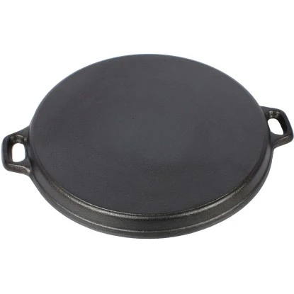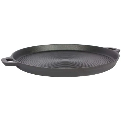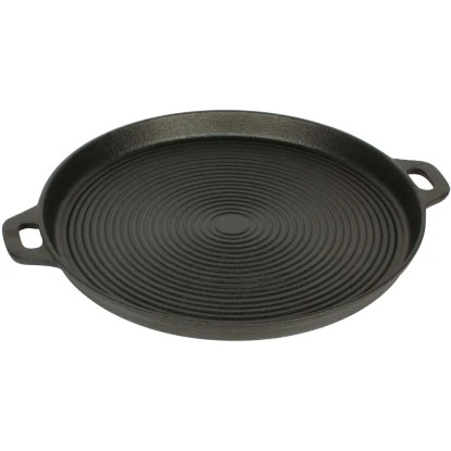 Hochwertige El Fuego Grillpfanne aus massivem emailliertem Gusseisen, die bereits mit pflanzlichen Ölen voreingebrannt ist. Die Grillpfanne hat mit zwei Handgriffe.