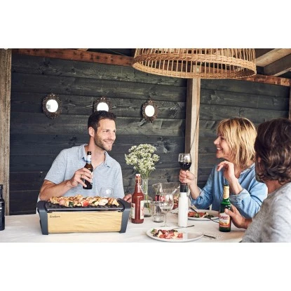 Der Enders® Holzkohle Tischgrill Aurora Mirror in der Farbe Gold ermöglicht jederzeit spontane Grillfeste mit Freunden. Die Grillfläche des Holzkohlegrills beträgt 37 cm x 25 cm und bietet damit ausreichend Platz für mehrere Personen.