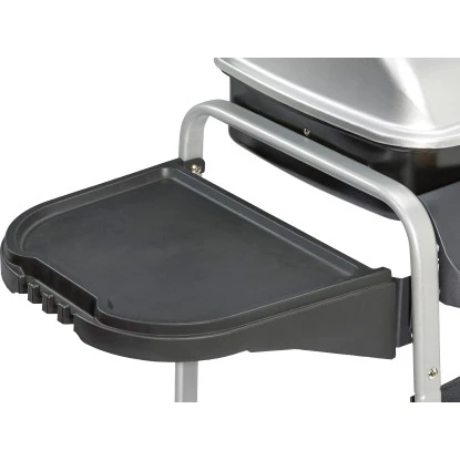 Auf den zwei Ablageflächen können Sie Geschirr, Besteck oder Gewürze bequem abstellen. Zusätzlich können Sie die Seitenflächen auch als Arbeitsfläche nutzen. Besonders praktisch sind die insgesamt sechs Besteckhaken, wobei jeweils drei an einem Seitentisch sind. Mit den Haken haben Sie Ihr Grillbesteck oder Schürze jederzeit griff- und einsatzbereit. Dank der zwei Räder lässt sich der Grillwagen mobil einsetzen und verfügt mit den zwei Standbeinen trotzdem über einen sicheren Stand.