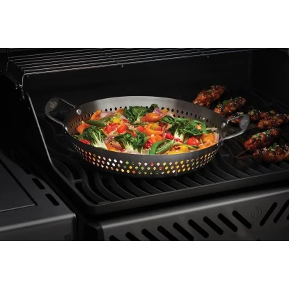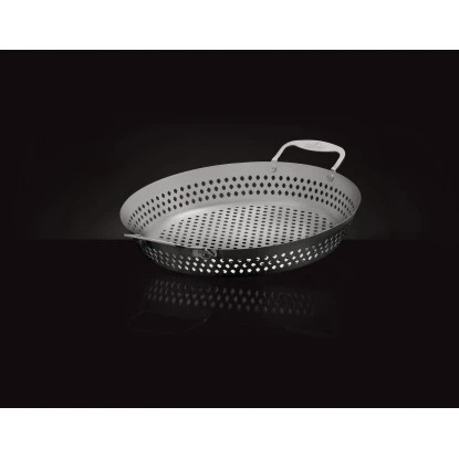 Der Napoleon Gemüsekorb aus Edelstahl verfügt über seitliche Haltegriffe zum Grillen von knackigem Gemüse. Dank der perforierten Form dringt Hitze rasch durch die löchrige Struktur des Grillkorbs zum Grillgut.