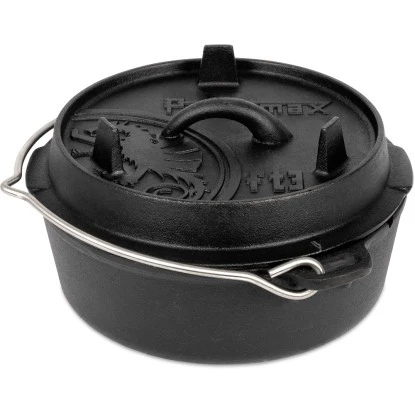 Der originale Petromax Feuertopf, oft auch als Dutch Oven bezeichnet, eignet sich ideal für das Kochen und Backen im Freien oder im heimischen Backofen. Durch die hervorragenden Eigenschaften des Gusseisens und die spezielle Oberflächenstruktur wird die Wärme effizient gespeichert und weitergeleitet. Die vorbehandelte Oberfläche (seasoned finish) macht ein erstmaliges Einbrennen unnötig und der robuste Feuertopf kann sofort verwendet werden. Der erhöhte Rand des Deckels ermöglicht es, Glut oder Holzkohle auch auf dem Feuertopf zu platzieren. So wird der Feuertopf von allen Seiten beheizt und eignet sich beispielsweise auch zum Brot backen. Die Thermometerdurchführung ermöglicht es, die Temperatur zu überprüfen ohne den Deckel anheben zu müssen. Der Deckel kann umgedreht auch als Pfanne verwendet werden.