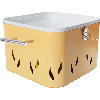 Der tragbare Grill im Retrostyle ist ideal für die Mitnahme im Park, bei einem Festival oder am Strand! Der Holzkohlegrill kann mit Hilfe der inkludierten Tragetasche ideal mitgenommen werden. Mit den zwei hitzebeständigen Tragegriffen und das leichte Gewicht von 7,5 Kilogramm ist der Grill auch ohne Tragetasche leicht zu transportieren. Der Grill bietet darüber hinaus eine Bambus-Arbeitsfläche und ein integriertes Lagerfach. So hat man trotz der kompakten Größe die Möglichkeit, Gerichte zuzubereiten, das Fleisch zu würzen und Teller und Besteck mitzunehmen.