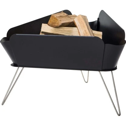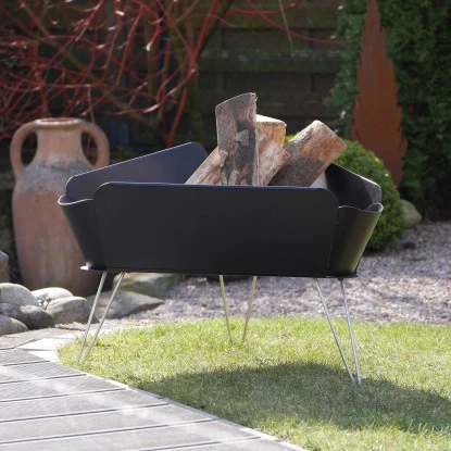Die Vasner Feuerschale Merive M1 ist die perfekte Design-Feuerschale für jeden Garten und jede Terrasse. Mit ihrem Korpus aus pulverbeschichtetem Stahl in mattem Schwarz und ihren silberfarbenen Standbeinen aus gebürstetem Edelstahl, sieht sie äußerst elegant aus und passt farbtechnisch zu jeder Möblierung. Außerdem sorgt die Pulverbeschichtung für eine geringere Rostanfälligkeit und eine höhere Hitzebeständigkeit. Mit ihrer praktischen, dreieckigen Form passt sie auch in kleine Raumkonzepte. Durch ihre kurzen Standbeine ist die Feuerstelle gerade für niedrige Sitzgelegenheiten wie z.B. Lounge-Gruppen bestens geeignet. Sobald die Feuerschale bei Ihnen angekommen ist, brauchen Sie lediglich die Edelstahl-Beine an den Feuerschalen Stahl-Korpus anbringen, die entsprechenden Schrauben und Schraubenschlüssel sind in der Lieferung mit enthalten. Der Zusammenbau der Feuerschale ist binnen weniger Minuten vollbracht. Vorteilhaft ist auch die Leichtigkeit der Feuerstelle. Trotz der hohen Qualität des Materials bringt die Merive M1 nur 4,85 kg auf die Waage. So kann man sie kurzerhand in den Kofferraum einladen und überall hin mitnehmen. Entfachen Sie in dieser außergewöhnlichen Design-Feuerschale ein stilvolles Feuer an all Ihren Lieblingsorten. Achtung! Zum Entzünden des Feuers dürfen KEINE flüssigen Brandbeschleuniger (z.B. Spiritus, Benzin o.ä.) eingesetzt werden! Die deutlich höheren Temperaturen können Schäden an der Pulverbeschichtung des Feuerkorbes zur Folge haben. Feuerschalen und Feuerkörbe entwickeln große Hitze. Achten Sie daher darauf, dass diese in alle Richtungen genügend Abstand zu brennbaren Materialien haben und der Untergrund des Aufstellortes für größere Hitze geeignet ist, damit kein Schaden entsteht! Ausstattungsmerkmale: – Niedrige Höhe – passend zu Lounge-Sesseln – Maße (H x B x T): 40 x 57 x 59,5 x cm – Außergewöhnliches, modernes Design – Flach und offen für 360° Wärmeabstrahlung – Abgerundete Dreiecks-Form integriert sich auch in kleine Räume – Hochqualitative Fertigungsmaterialien – Extra robuster Korpus aus pulverbeschichtetem Stahl – Stabile Beine aus gebürstetem Edelstahl – Geringes Gewicht: 4,85 kg – Blitzschnelle Montage Lieferumfang: 1 x Merive M1 Schale 3 x Edelstahl Standbeine 1 x Montageset (Schrauben & Schraubenschlüssel) 1 x Bedienungsanleitung
